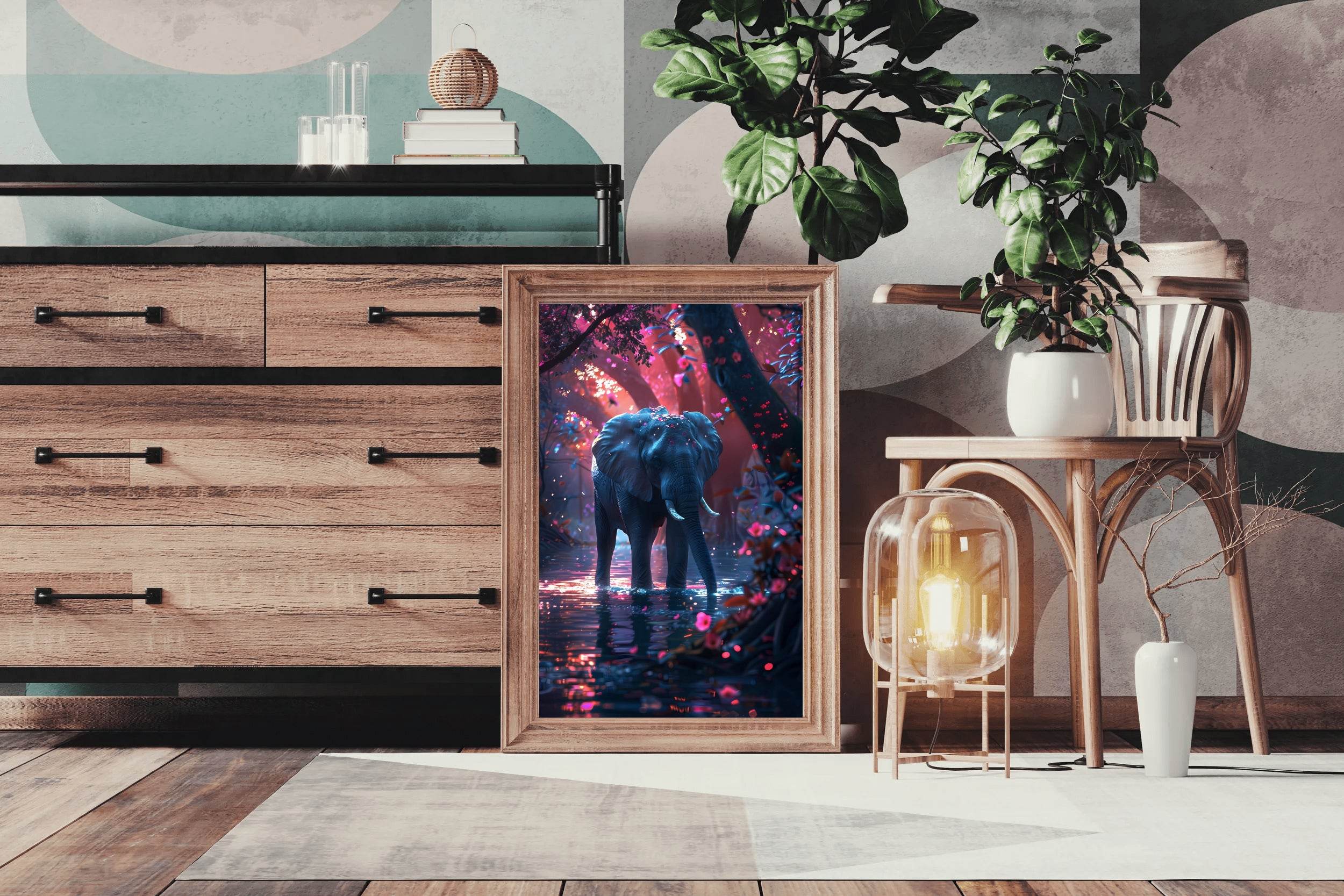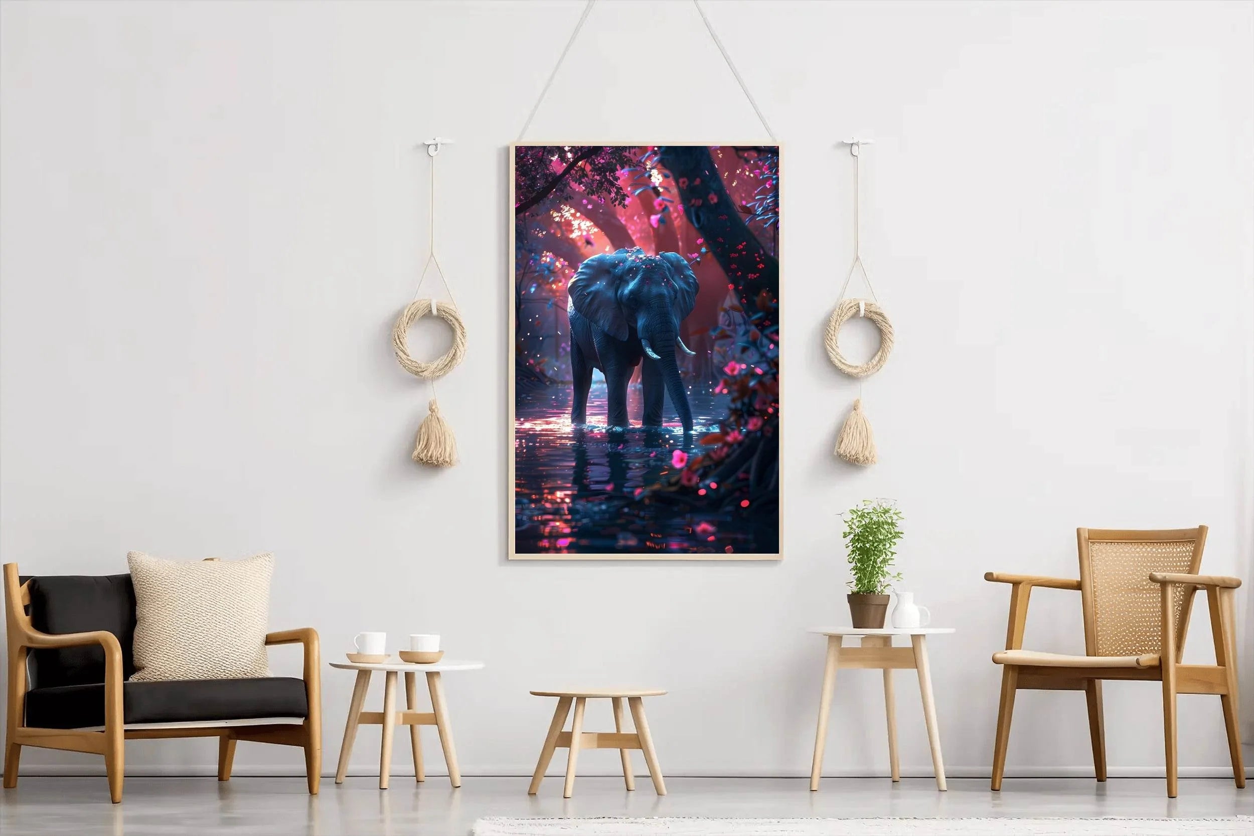 This wall art is not only visually appealing but also tells a story. Elephants are known for their intelligence, loyalty, and strength, making them a symbol of power and wisdom. By adding this piece to your home, you are incorporating a deeper meaning into your décor.